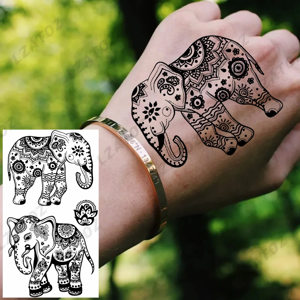 Henna Elephant Animal Temporary Tattoos For Woman Adults Moon Scorpion Wolf Seahorse Fake Tatoo Hand Washable Tattoo Sticker Temporary Tattoos Aliexpress